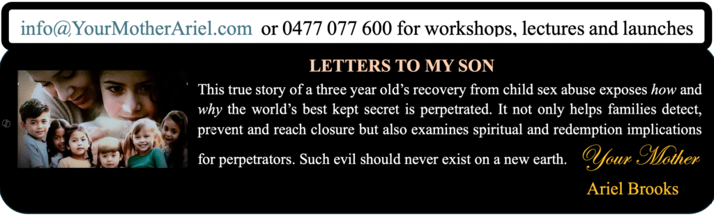 To truly absorb the meaning of the statistics about child sex trafficking is overwhelming, but to read Ariel Brooks’ letters to her son and follow the horrifying revealing of the damage done to herself and her son brings these truths into a home and a family trying to do the best for each member. This is an extremely well written account of a mother willing to face the worst demons imaginable and defeating them. This book is so important for every caring parent to read. It is an amazing achievement that shares the tools needed to uncover the suppressed emotions due to shame, guilt and especially the threats of the abusers, such as “Daddy is going to cut off my head” or “Beto gave me a baby.” The red flags hinting at abuse, the correct parental approaches, the steps of successful therapy and the final breakthroughs to rebirth are shared to help all of us to be more observant and engaged in the lives of our children. Every parent should read this. Every grandparent should read this. We, as a community of caring adults can prevent this global tragedy as we awaken to the shadow world of those who abuse for the sense of control over their own damaged lives. And do pay attention to the news today to see how much what this book reveals is playing out on the world stage.